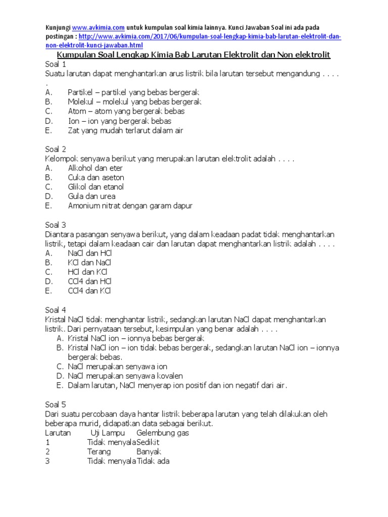 Doc Soal Larutan Elektrolit Dan Non Elektrolit Maskur Wae Academia Edu