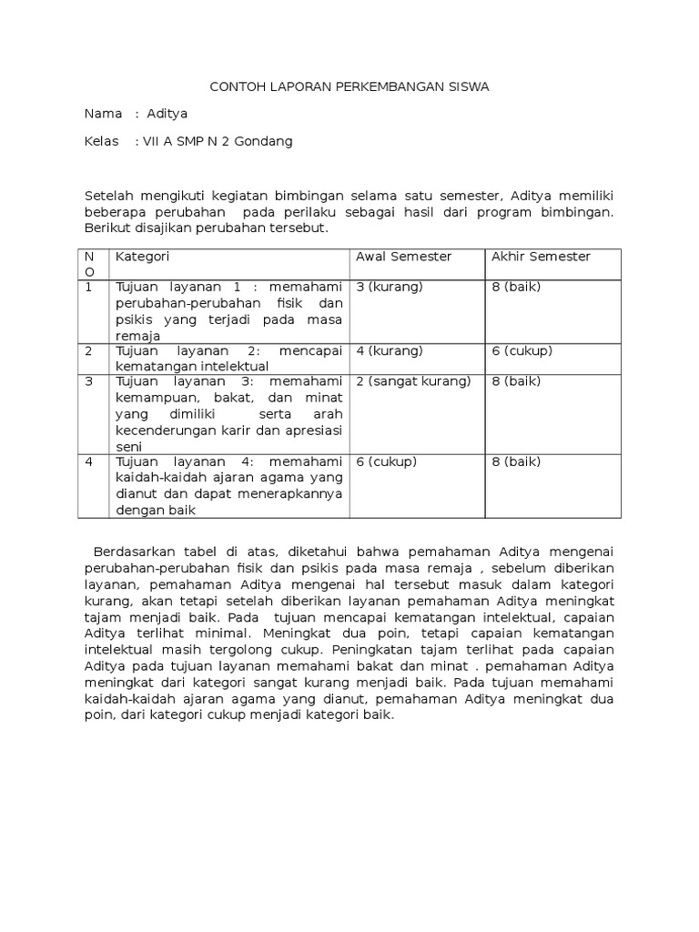 Contoh Laporan Perkembangan Siswa