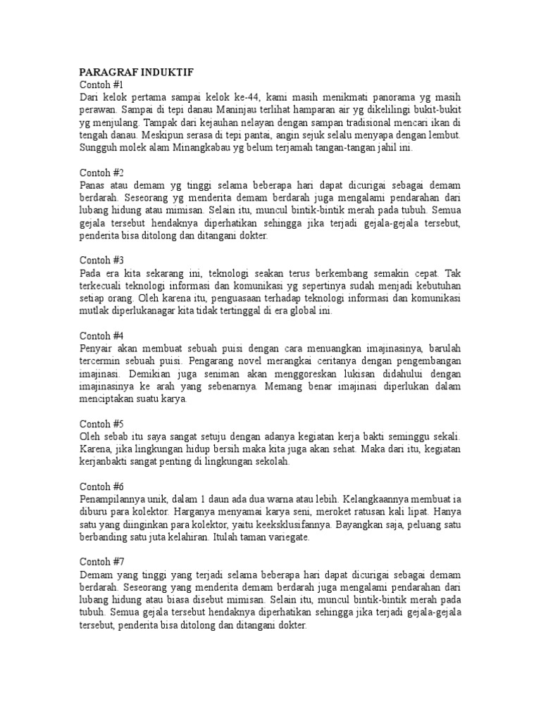 Mungkin anda pernah mendengar kata Paragraf Deduktif. Contoh Paragraf Induktif tentang Lingkungan dalam Bahasa Indonesia Paragraf induktif merupakan salah satu diantara jenis-jenis paragraf yang ada. Meskipun kebiasaan buruk ini berdampak besar bagi lingkungan terutama bagi sungai-sungai yang mengalir di wilayah Jakarta.