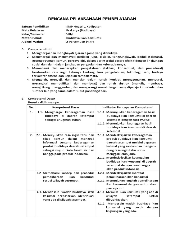 RPP Prakarya Kelas 7 Kurikulum 2013 Revisi 2016 Semester 1 dan 2 RPP BUDIDAYA 4. Download RPP Prakarya SMP Kelas 7 Kurikulum 2013 Revisi 2017. RPP merupakan perangkat administrasi wajib bagi guru sebelum mengajar karena idealnya guru membuat sebuah perencanaan terlebih dahulu untuk.