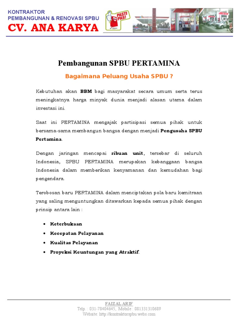 Bisnis Spbu Indonesia Proposal Usaha Spbu Pom Bensin