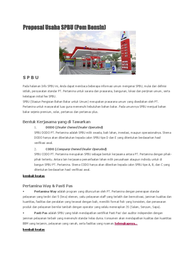 SPBU Stasiun Pengisian Bahan Bakar untuk Umum merupakan prasarana umum yang disediakan oleh PT. Contoh Proposal Usaha SPBU PENDAHULUAN. Usaha Membuat Lilin Hias.