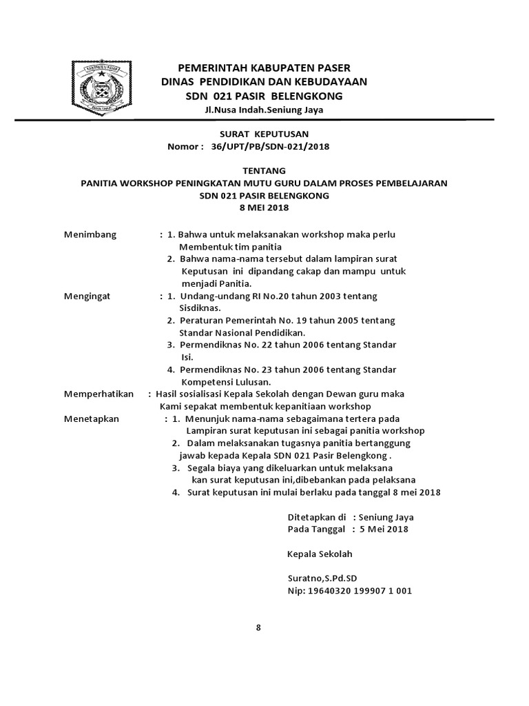 Contoh Surat Keputusan Panitia Pelaksana Kegiatan Kumpulan Surat Https Www Unja Ac Id Wp Content Uploads 2018 05 A 1 A 3 Sk Penunjukan Panitia Pelaksana Workshop 30052018145148 Pdf Sk Narasumber 2018. Mengumpulkan bahanmateri jadwalagenda dan pemateri dalam mendukung kegiatan pelatihan. Bahwa untuk maksud tersebut perlu menetapkan dalam suatu keputusan.