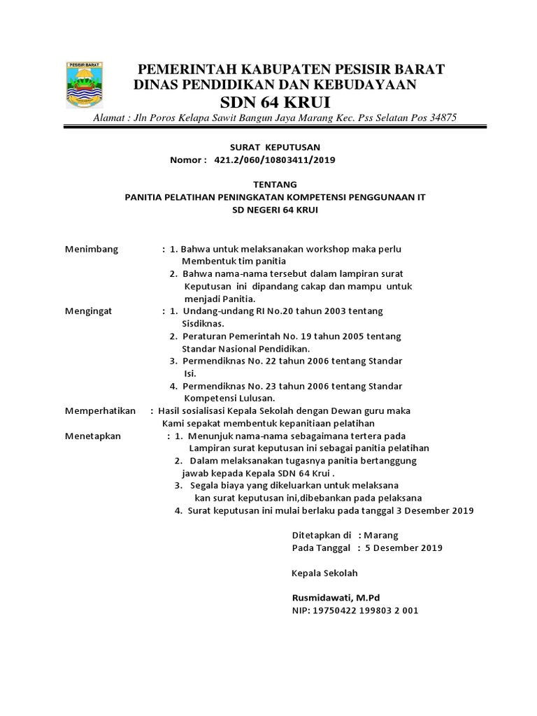 Contoh Sk Panitia Pelaksana Kegiatan Pelatihan Guru Galeri