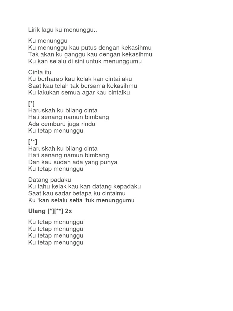 Untuk mencipta kata Sebab nyanyian rindu tak mungkin selamanya tidurlah kekasih tidurlah kekasih. Inilah akhir cerita kita Setelah sekian lama kita bersama Kau khianati cintaku dengannya Mungkin kau anggap dia lebih segalanya. Oleh ucapan manismu Dan kau bisikkan kata cinta.