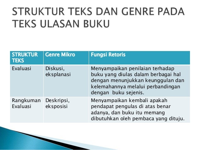 Tujuan dari teks ulasan dibuat yakni. TEKS ULASAN BUKU Dosen Pengampu. Sebagai bentuk media pengenalan.