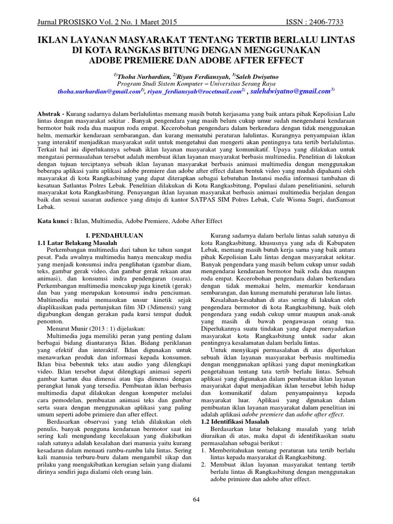 Meikurniawanamikomacid Abstract In the world of advertising animation became one of the mainstays in designing a visual communication design. Cara agar iklan layanan masyarakat berjalan dengan baik dan sesuai dengan sasaran kepada masyarakat di kota Rangkasbitung. 1 perancangan iklan layanan masyarakat tertib lalu-lintas berbasis animasi 2d sebagai media sosialisasi ditlantas polda diy.
