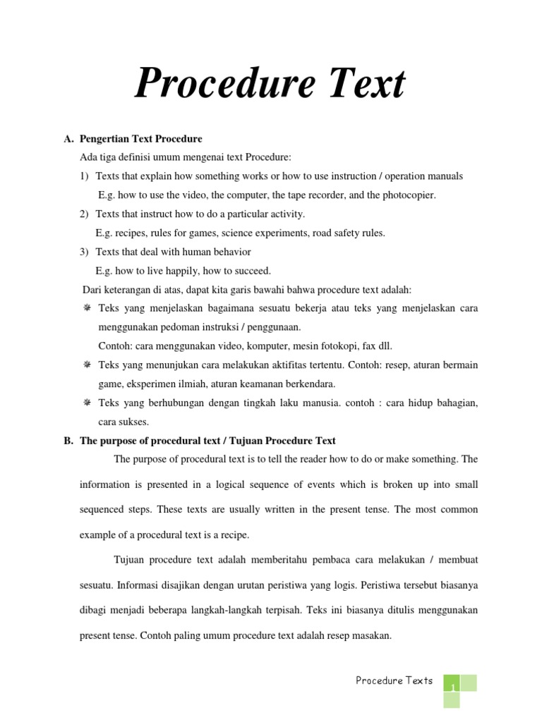 Teks Prosedur meliputi Pengertian Tujuan Macam-macam Ciri-ciri dan Contoh T eks Prosedur.