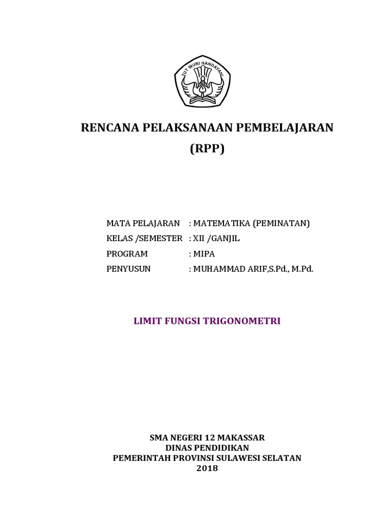 1 Rpp Limit Fungsi Trigonometri 2018 2019 Docx