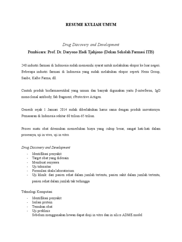 Resume Kuliah Umum Drug Discovery And Development